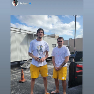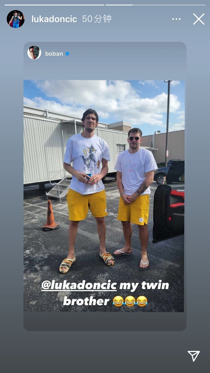 直播吧9月22日讯 今天,独行侠球员博班-马扬诺维奇更新了Instagram Story,晒出一张自己与队友东契奇的合影。