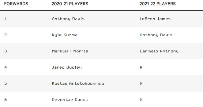 然而,他们侥幸进入了前10名,但无法避免要打附加赛。他们对金州勇士队的胜利让他们在季后赛首轮对上了常规赛排名第二的太阳队。勒布朗和AD在那时是健康的,或者说至少是半健康的。湖人队在首轮系列赛对阵菲尼克斯的比赛中以2-1领先,直到戴维斯的腹股沟受伤。这次受伤使他缺席了G4和G5,在强行复出的G6中只出战了5分钟。最后,湖人输掉了这三场比赛,他们的卫冕之路也告一段落。如果他们保持健康,也许他们有机会赢得背靠背冠军,但是他们没有,他们需要想办法重整阵容回到那个可以游行的队伍。