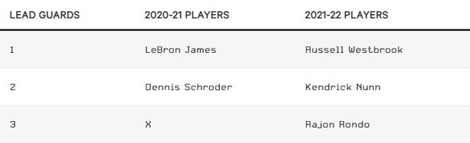 湖人引进威斯布鲁克作为球队的第三核心,并且引进纳恩和隆多作为他的替补。施罗德上赛季的表现对湖人来说多少有些差强人意,这个休赛期,他们全面提升了阵容的天赋和深度。