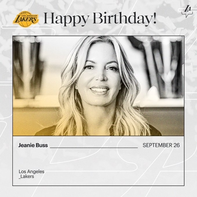 直播吧9月27日讯 今天是湖人老板珍妮-巴斯的60岁生日,球队官方送上生日祝福。