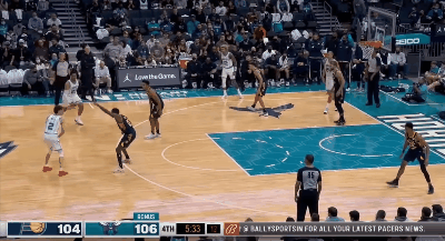 前三节一直carry全队的鲍尔第四节手感略有下滑,只有一个大心脏的三分命中。但是无论是挡拆后给普拉姆利的喂饼还是海沃德的关键三分,都来自他的助攻。
