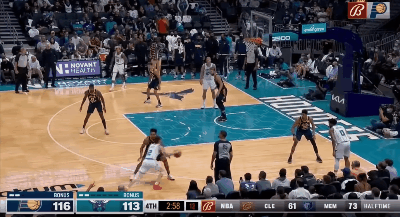 随后莫兰特又借助挡拆来到了护框高手阿伦面前,他还是用了和上一回合一样的抛投再添两分;