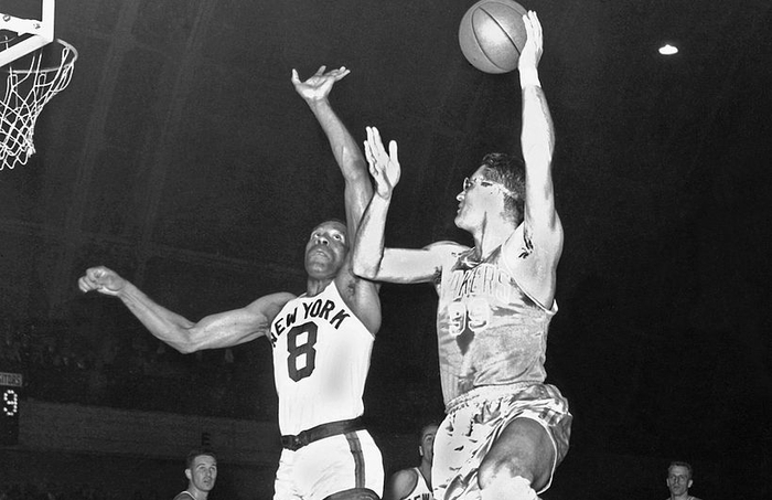 9、1954年4月4日,总决赛第三场,麦肯18投11中得到30分15篮板,带领湖人以81-67击败了雪城民族队,让湖人大比分2-1领先。那年的总决赛中湖人与民族苦战七场,麦肯两次砍下30+的高分。最终湖人笑到了最后,实现了三连冠的伟业。