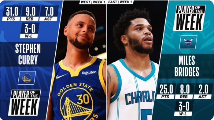 NBA首周周最佳球员出炉:西部库里 东部布里奇斯