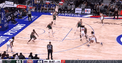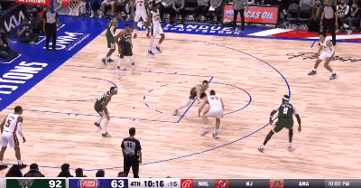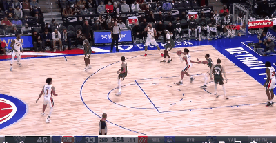 为数不多的几次转换进攻和持球单打,也能明显感觉出康宁汉姆的这个身体素质,确实和球探说的一样,既没有爆发力也没有绝对速度。除了一次转换进攻中雄鹿防守松懈时候的一记抛投,第二次他想在阵地战时如法炮制的时候,就被有所准备的雄鹿球员干扰了。
