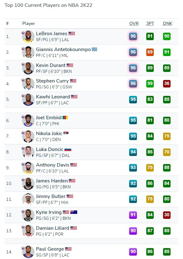 2K22新赛季首次能力值更新:哈登&威少-2 利拉德-4 乔治+2