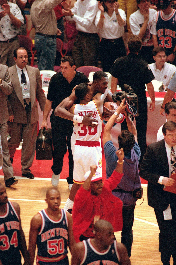 7,1994年6月23日,总决赛G7,火箭90-84尼克斯,奥拉朱旺25分10篮板7助攻1抢断3封盖,率队夺得队史首个总冠军。