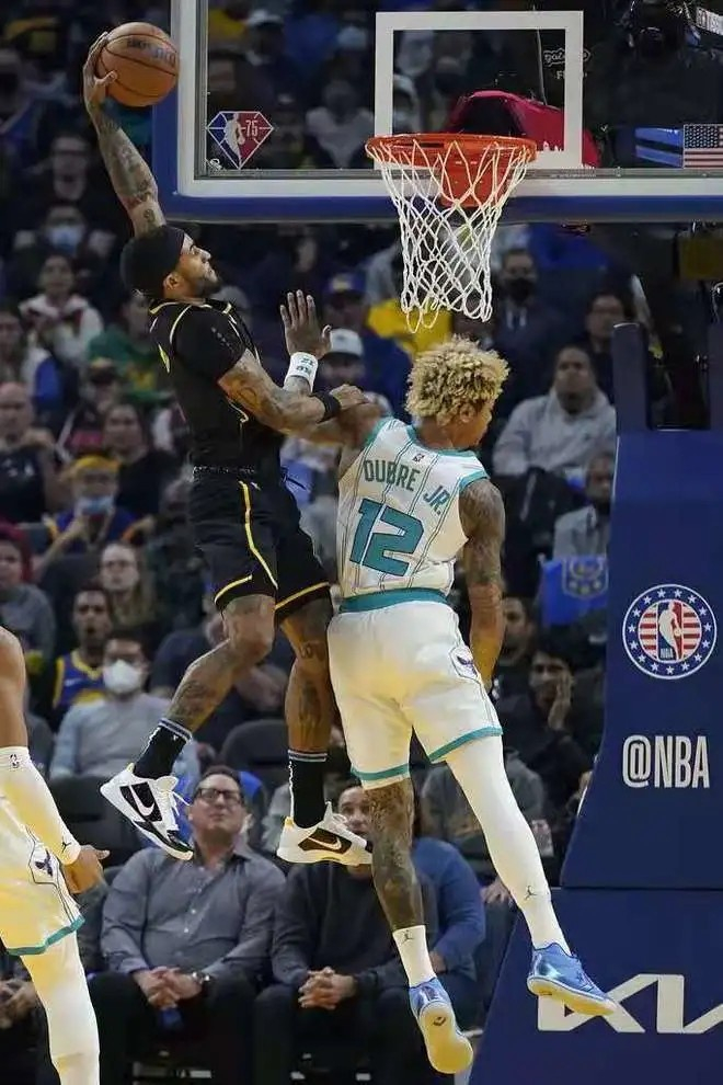 对黄蜂的比赛进行到了最后三分钟,全场轰下32分的布里奇斯长驱直入,撞开库里打算来一记暴扣,小佩顿追了上来,送上一记大帽。