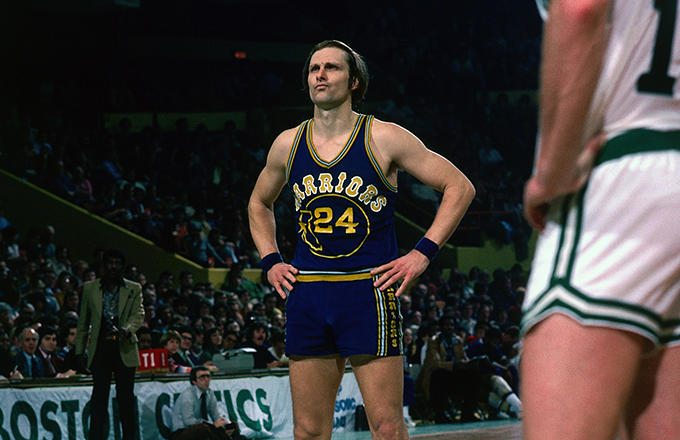 9、 1975年,巴里率领勇士再度杀回到总决赛。然而之前并没有预计到勇士队能够在季后赛走那么远,所以奥克兰的球馆已经预订给了另一项大型活动,这也使得总决赛期间勇士的主场不得不换在旧金山的球馆举行。系列赛第四场,手握3-0优势的勇士以1分险胜夺得队史第三座总冠军奖杯,巴里砍下20分5助攻,以场均29.5分当选NBA总决赛MVP。
