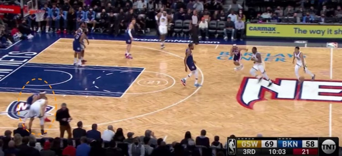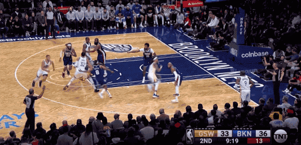 弧顶吸引防守之后可以看到篮网的下线到处报警