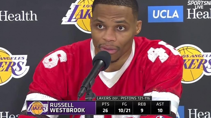直播吧11月22日讯 湖人逆转活塞,赛后威少接受了采访。