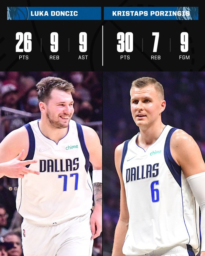 东契奇在第三节8投6中砍下15分和雷吉对飙。面对快船的五小阵容,波尔津吉斯也展示出了他的杀伤力,他频频持球杀向禁区制造了快船队极大的防守压力。全场比赛他10次站上罚球线,创下了他本赛季的罚球纪录。乔治的绝平进球也没影响最终的结果。加时赛中波尔津吉斯两次在禁区得分,当他再次面对肯纳德这样的小后卫,他也轻松运球后干拔得分。