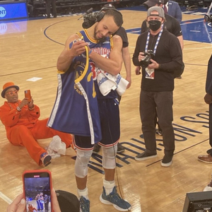 这应该是发朋友圈了!尼克斯著名球迷斯帕克-李赛后坐地偷拍库里