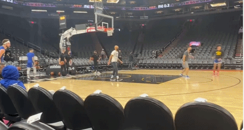 状态不错!克莱赛前训练完成跑位后 45°三分投篮命中