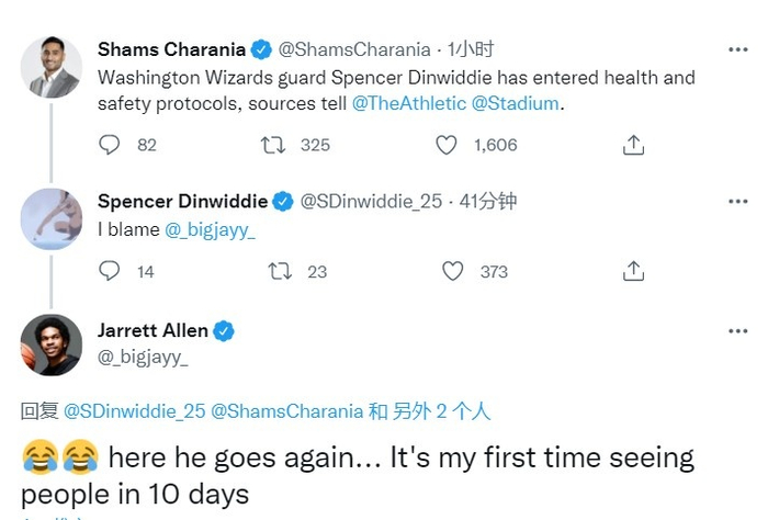 之后丁威迪更推转发Shams报道,并写道:“都怪@贾莱特-阿伦。”