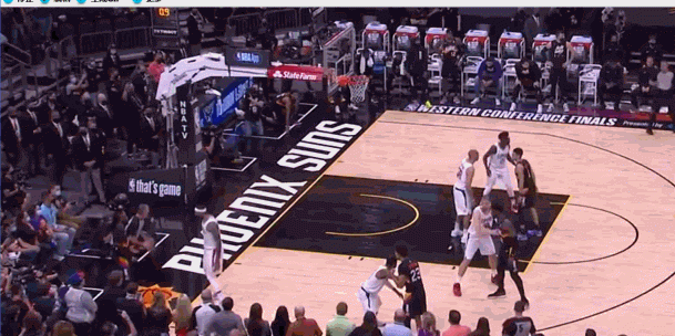 6月23日西部决赛G2,比赛最后0.9秒,克劳德底线发球直接送给切入的艾顿,完成空接扣篮绝杀!裁判回放之后扣篮算进,太阳凭借这记绝杀反超比分拿下G2!
