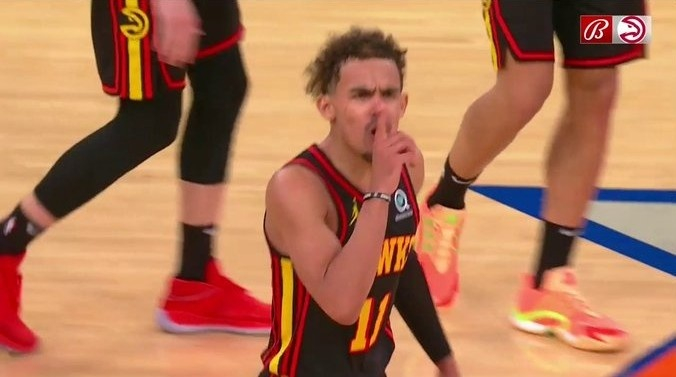 值得一提的是,在这场比赛中,尼克斯球迷曾齐声大喊“Fxxk Trae Young”,特雷-杨在打进绝杀球后冲着主场球迷们做出了闭嘴的手势,嘴里还嚣张地回应:“这里真TMD安静啊!!”