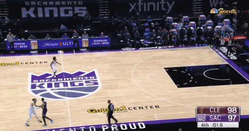 3月28日常规赛,终场前1.6秒,国王以97-98落后骑士,随后福克斯在后场发球,直接长传给到前场的巴恩斯,后者一接球便随即转身三分出手,灯亮球进!