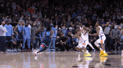 12月28日常规赛,灰熊客场挑战灰熊,最后时刻,布克弧顶的三分冷箭只给灰熊留下了5秒的时间,灰熊以112-113暂时落后。