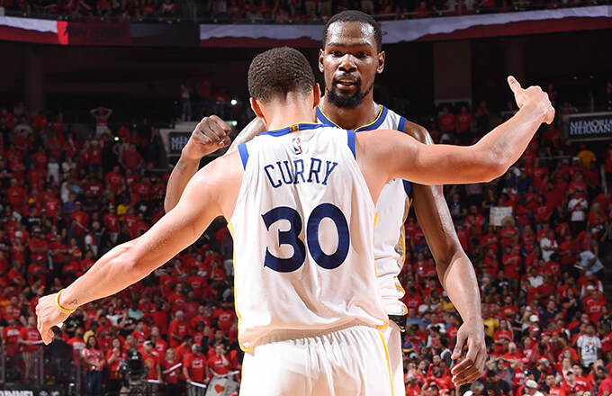 6、2018年5月29日,勇士客场101-92战胜火箭,西决抢七淘汰对手。在这场艰苦的客场比赛中,杜兰特得到34分5篮板5助攻,其中末节得到11分。