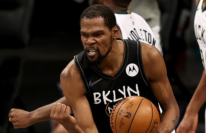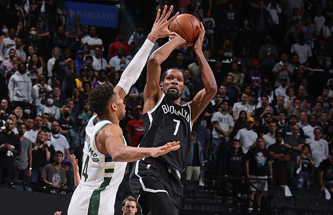 10、2021年6月20日,东部决赛抢七战,篮网主场111-115不敌雄鹿遗憾出局。杜兰特和字母哥打出了一场“神仙打架”级别的比赛,字母哥得到40分13篮板5助攻,阿杜则打满53分钟,得到48分9篮板6助攻。第四节最后一攻,阿杜顶着PJ-塔克的防守命中长两分。最终加时赛,阿杜体能崩溃一分未得。细细想来,这可能是杜兰特职业生涯最遗憾的一场比赛。