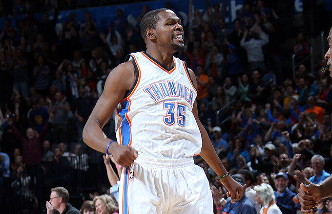 2、2014年1月18日,雷霆主场127-121战胜勇士,杜兰特出战44分钟得到54分6助攻,54分是阿杜生涯至今的单场最高分。