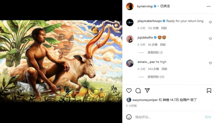 这也是欧文本赛季第一次发跟篮球相关的INS,欧文在发完这个曼巴相关的INS之后,又发了一条关于部落文化的动态。