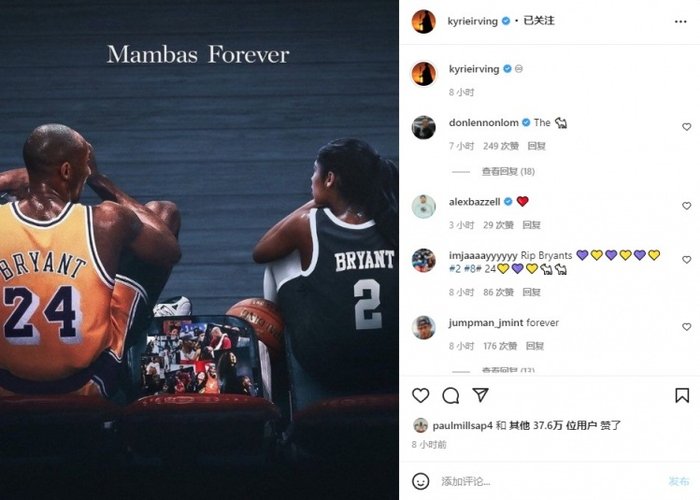 曼巴永恒!欧文社交媒体晒动态怀念科比&Gigi
