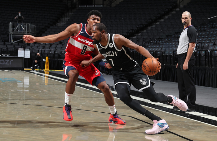 2020年12月15日,距离跟腱断裂已过去552天,杜兰特终于重新登上了赛场。在篮网新赛季的季前赛揭幕战中,他出战23分钟便高效揽获15分,在场上依旧跑跳如飞,无惧对抗,如出笼野兽般不可阻挡。复出的第一个赛季,杜兰特在场均33.1分钟的出场时间里贡献26.9分7.1篮板5.6助攻1.3封盖,场均数据较受伤之前不降反升。到了季后赛,死神的镰刀更加锐不可当,对阵雄鹿的东部半决赛,他在G5轰出了49分17篮板10助攻3抢断2封盖的季后赛生涯代表作,率队拿下了天王山之战;G7又出战季后赛生涯单场第二高的53分钟,狂砍48分9篮板6助攻。本赛季至今,杜兰特出战32场,场均登场时间为近8个赛季最高的37.1分钟,场均得分为近8个赛季最高的29.9分,可以说,在他身上,丝毫没有看到被跟腱大伤影响的模样。