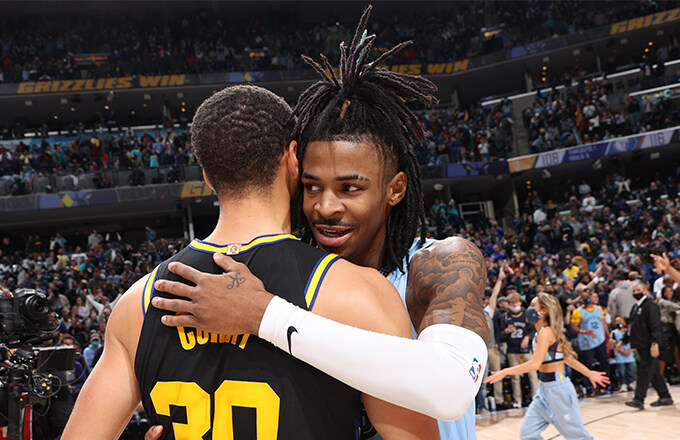 莫兰特跟库里很相似的地方,在于他也有一颗游戏的心。他全场跟佩顿、达米恩-李都在进行着一种斗牛式的竞争,就是纯粹的比赛,大家识英雄重英雄,没有掺杂多余的杂质。
