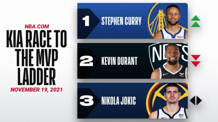 除了高产高效的得分,杜兰特场均还有7.4个篮板和5.8次助攻。在欧文半赛季没打的情况下,篮网能维持东部前三的战绩,杜兰特功不可没。但是在强强对话(对阵东西前四)中,篮网队只有1胜8负。尤其是和勇士队的比赛,杜兰特单节8投0中还是让人失望的。高阶数据上,杜兰特的正负值和不可替代值也没排到联盟前十(分别是第19和第11)。最不巧的是,在其他竞争者都在发力的时候,他受伤倒下了,要休息4-6周,这也可能让他告别MVP的竞争。