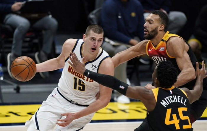 掘金队在有约基奇在场的时间内,每百回合净胜对手9.7分,他下场后,球队每百回合净负对手11.7分。有没有约基奇,掘金队完全就是两支球队。