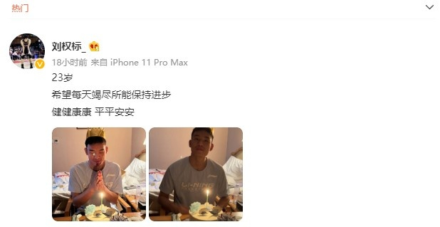 球霸小目标!刘权标晒23岁庆生照:希望健健康康 平平安安