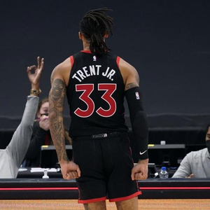 本场比赛是特伦特生涯第8次得分过30,也是过去一周内特伦特连续第4场得分过30。猛龙后卫小加里-特伦特出战40分钟,22投10中,三分15中9,罚球4中2,拿下31分。