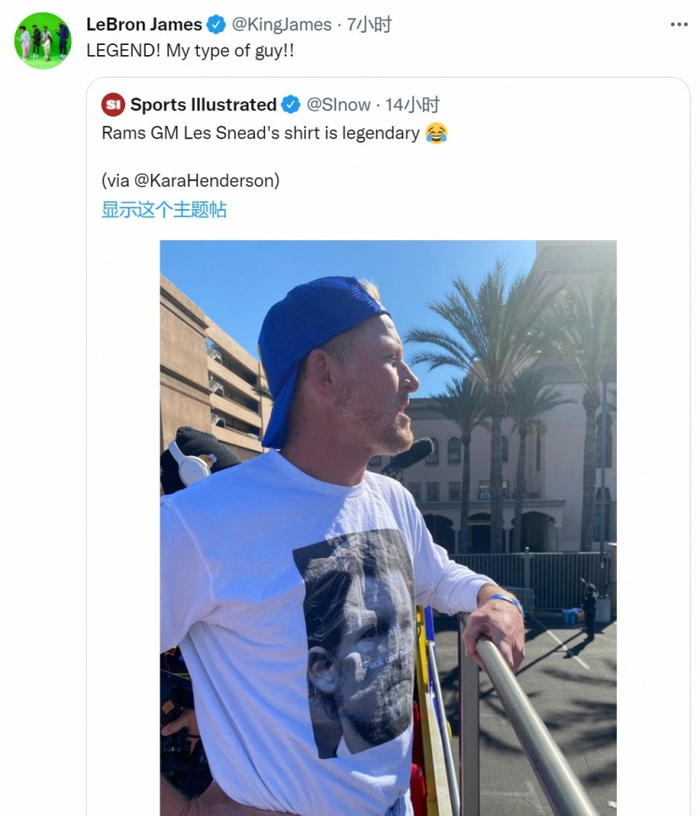 詹姆斯转发了这张照片并写道:“传奇!这人能处!”