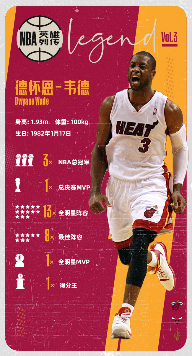 韦德不仅是历史顶级的持球突破手,从某种角度来说,他身上还有阿伦-艾弗森的特点——速度极快、突破杀伤力强、无球水平同样高超。为了节省韦德的体力,热火给他安排了大量的无球切出、接球终结战术。跑出空位后,韦德毫不手软,命中底角三分。
