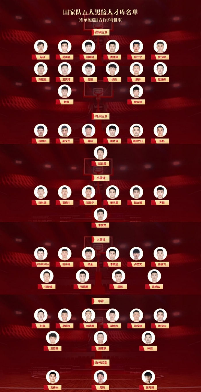 人才济济!中国篮协公布国家队五人男篮人才库名单