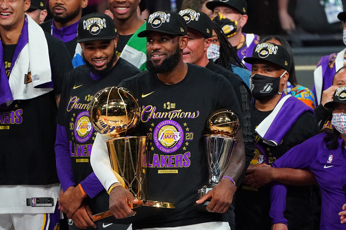 湖人时隔七年再度闯入季后赛,时隔十年再度豪取西部最佳战绩,时隔十年再度夺得西部冠军,时隔十年再度捧起那座辉芒熠熠的奥布莱恩杯,而詹姆斯也成为联盟历史上首位代表三支不同的球队夺冠并分别加冕总决赛MVP的球员。