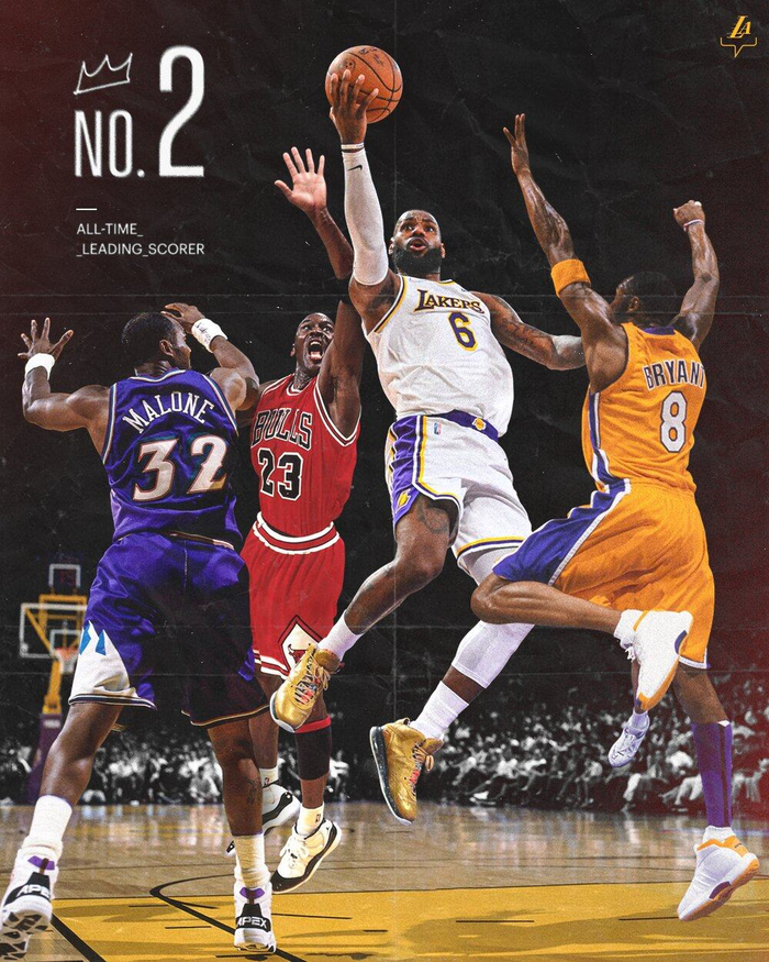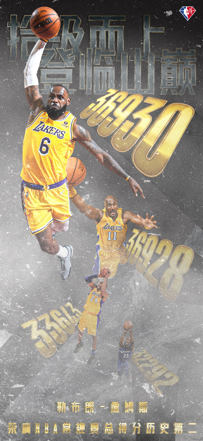詹姆斯的漫长生涯伫立着不胜其数的里程碑,时值此际,他的生涯总得分超越马龙升至历史第二。