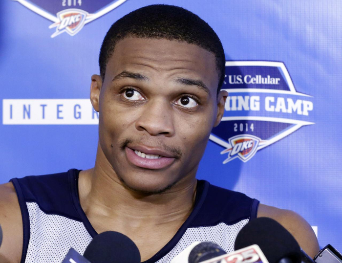 赛后,有记者问全场14投5中得到14分的威少:“雷吉回到俄克拉荷马打球可是一个热点,你觉得你们对此处理得如何?”