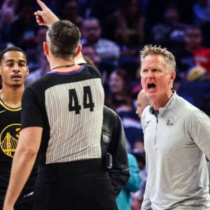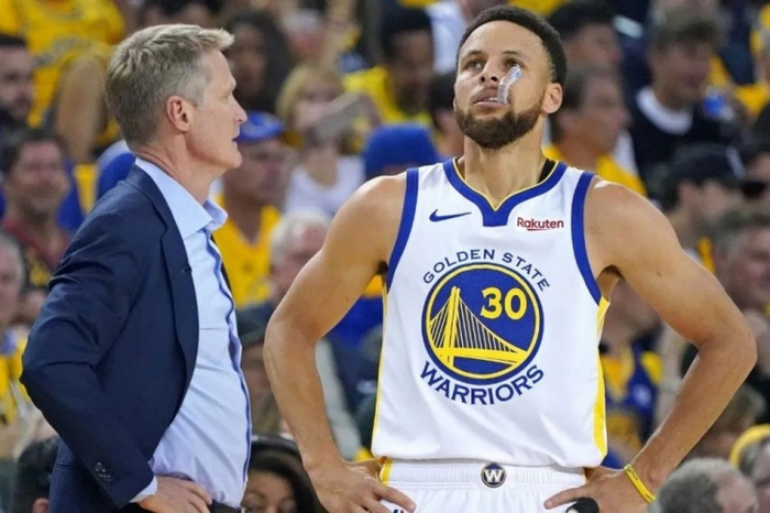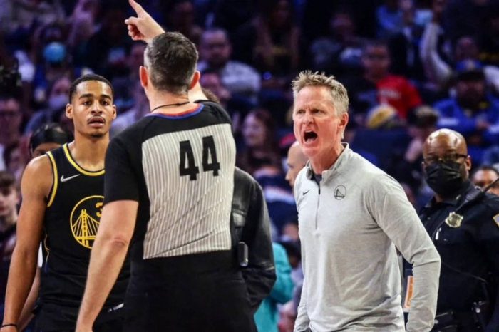 勇士在第二节被打一个21-43,上半场结束前落后达到26分,科尔借着普尔最后一球被盖的机会,冲裁判南塞尔咆哮不止,说那个球是干扰球,果然连吃两个T。他昂首阔步,头也不回,气哼哼地走向通道回了更衣室。