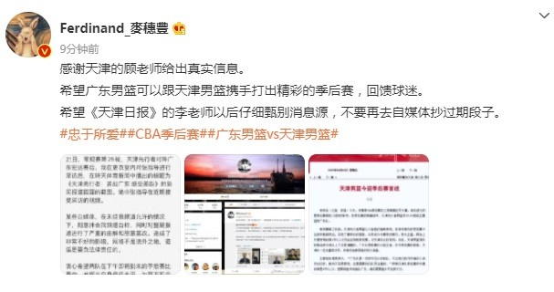 直播吧4月1日讯 媒体人麦穗丰更新了其个人微博,澄清了此前天津队主教练张德贵有关广东队防守方面的言论。
