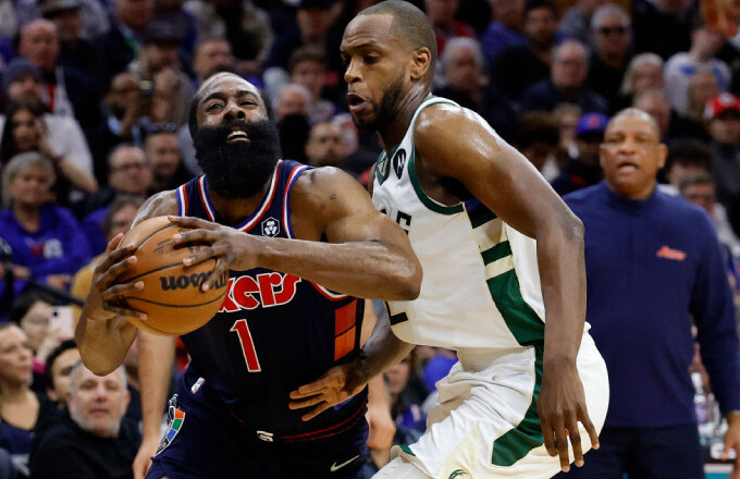 对76人的比赛,马修斯和霍勒迪这两位力量型球员组成的后卫线防守硬度极佳,他们是雄鹿防线的第一道屏障,他俩基本屏蔽了对方外线的持球强突和中距离背身。在波蒂斯替补洛佩兹出场之后,雄鹿的轮转防守几乎无懈可击。他们每个人都可以换防多个位置,每个人都不需要队友协防帮忙。在这五人同时在场时,76人的进攻几乎完全找不到空位,只能通过恩比德和哈登的个人能力打一些高难度的球星球。