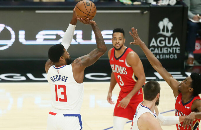 快船最大的优势当然还是保罗-乔治。鹈鹕的外线防守不强,除了英格拉姆之外没人对得上乔治,乔治可以无差别的干拔鹈鹕其他所有外线。瓦兰虽然进攻很好,但防守和祖巴茨一样,也是容易被对手针对的环节,乔治可以利用这点大做文章。鹈鹕协防轮转的速度和积极性并不出众,保罗-乔治仍可像对森林狼一样,通过大量的突破分球为外线射手创造空位投篮的机会。