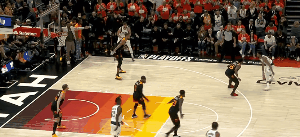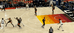 第三节3分钟之后基德换下了鲍威尔,再次使用5 out阵容,爵士举步维艰。还剩5分33秒时,爵士依然落后了17分。
