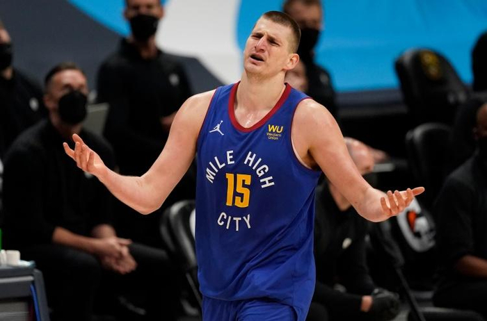 比赛还剩2分钟左右,掘金进攻,约基奇走步违例,但裁判当时没有判罚。