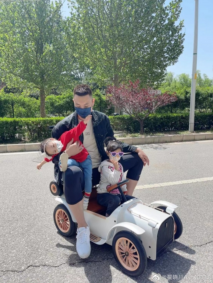 直播吧4月29日讯 今天,北京球员翟晓川微博晒出一组自己与两个女儿的户外照。