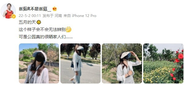 张茹晒出一组照片并写道:“五月的天🌞这个样子会不会无法辨别,可是公园真的很晒家人们…… ”