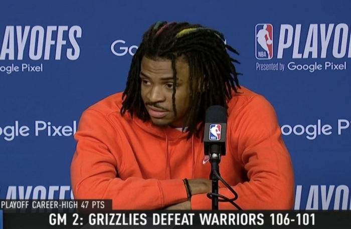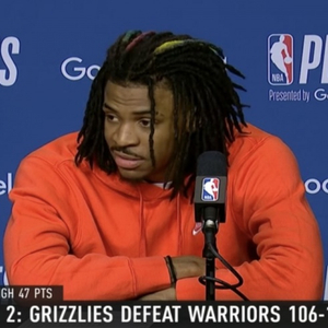 直播吧5月4日讯 NBA季后赛,灰熊战胜勇士,大比分扳为1-1。赛后,莫兰特接受了采访。
