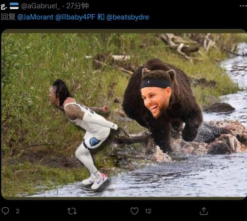 有网友对莫兰特的表现进行了称赞,但多数仍集中在昨天灰熊输给勇士的比赛中,有人用如下的梗图回复了莫兰特: